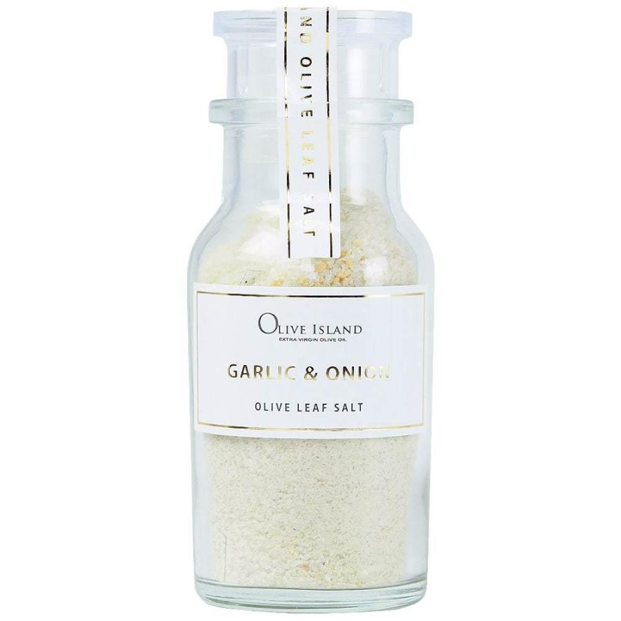 バーベキューにおすすめの調味料として、オリーブの葉とガーリック、オニオンを組み合わせた風味豊かな塩です。