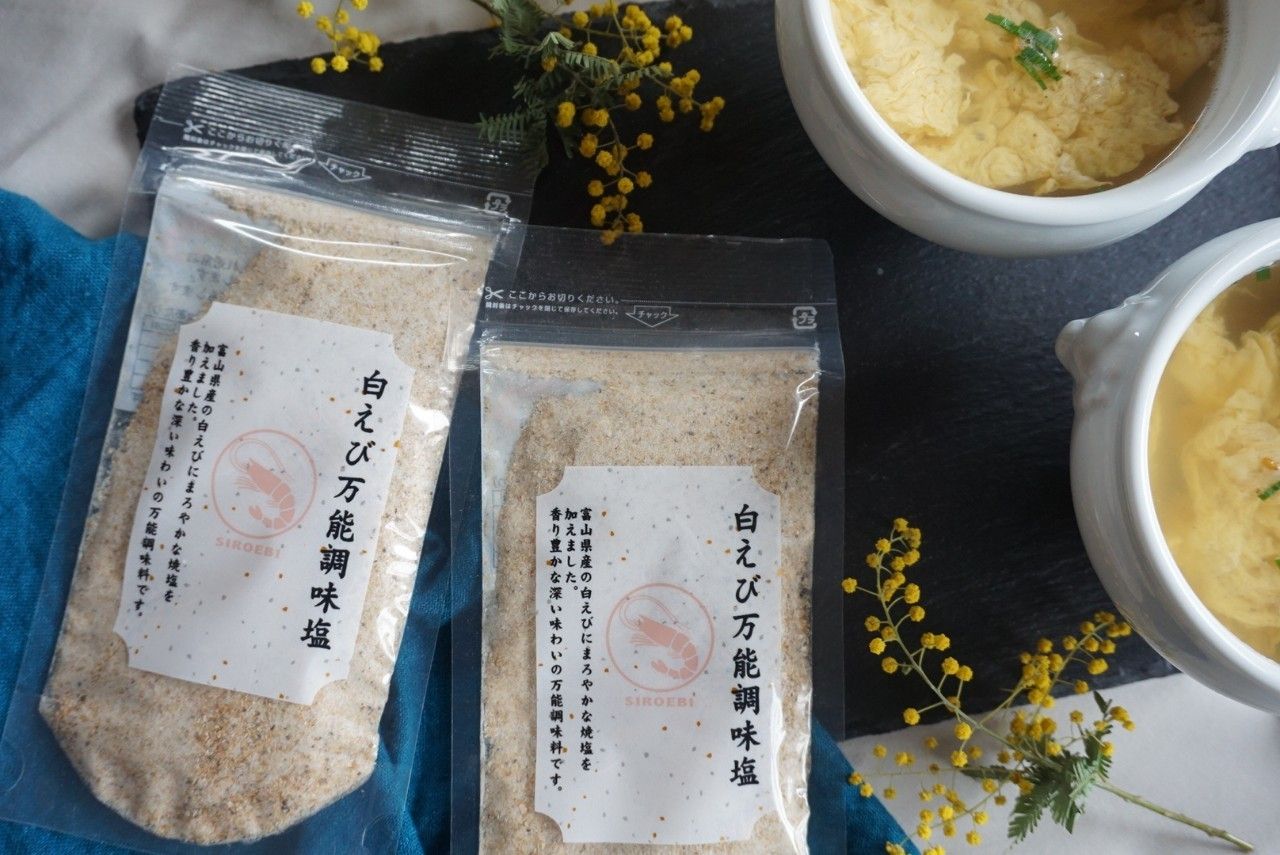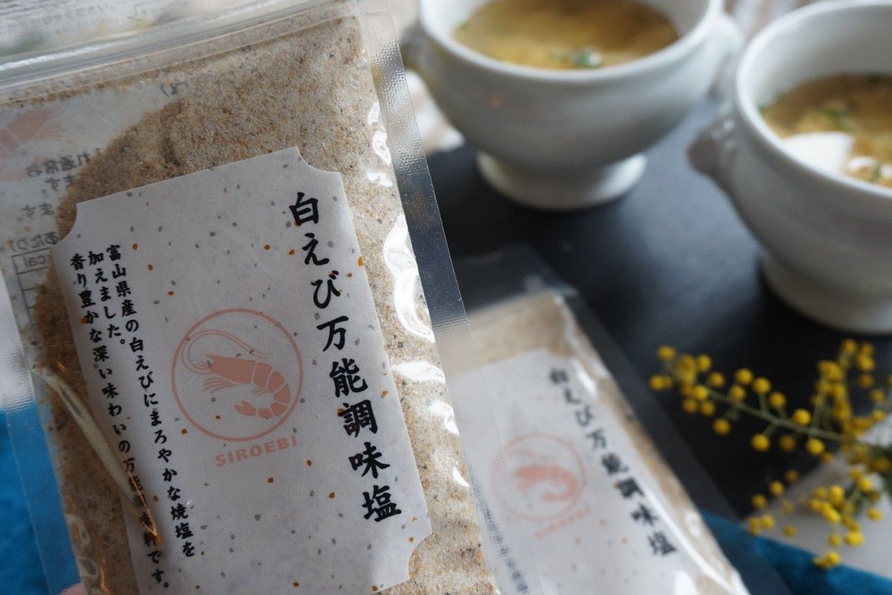 富山県産の白エビにまろやかな焼き塩をブレンドしたこの調味料は、香り豊かで深い味わいが特徴です。