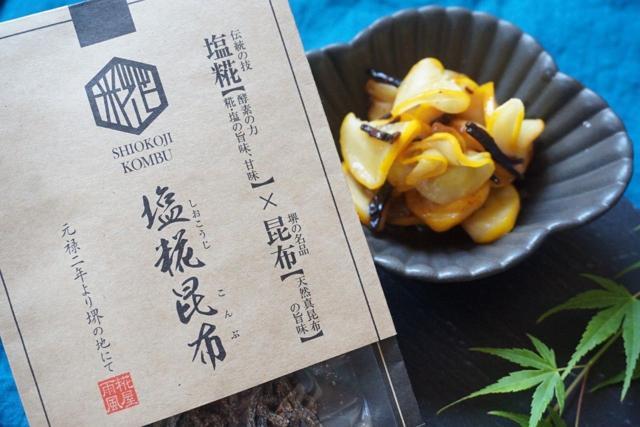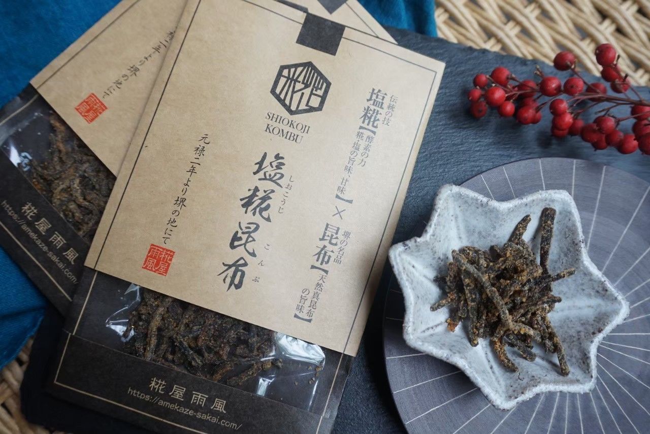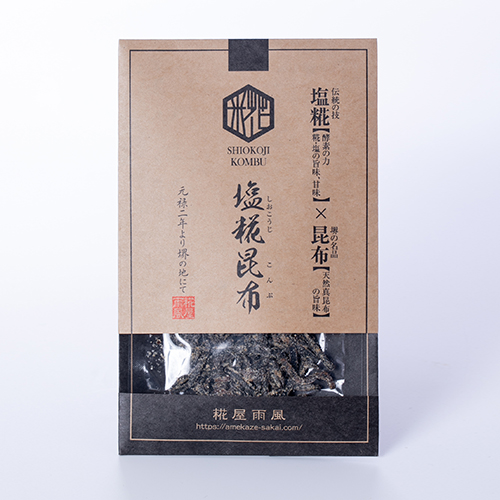 雨風の粉末塩糀(特許取得)と郷田商店の郷田商店“北海道道南産天然真昆布”をあわせた、新感覚の昆布です。