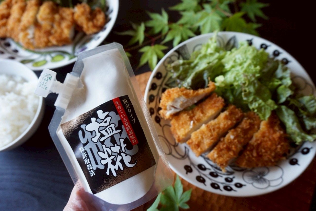 雨風の塩糀を粉末にしまた。酵素が生きたまま働いており、料理の味を豊かにします。