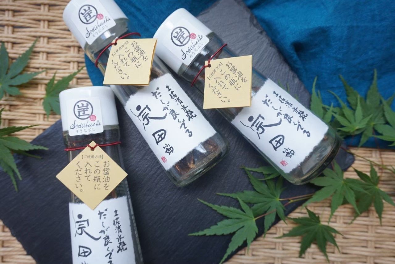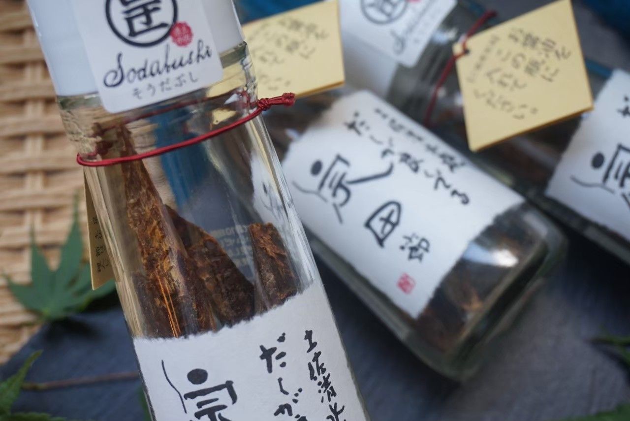 ご家庭にある醤油を瓶に注ぐだけ。冷蔵庫で2週間寝かせると、香り高いだし醤油に大変身!