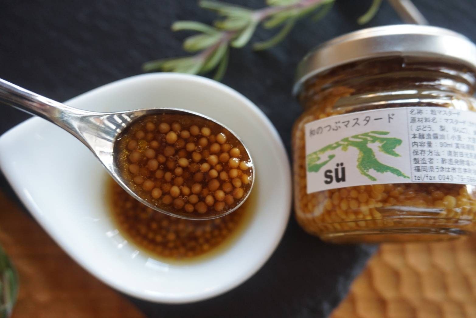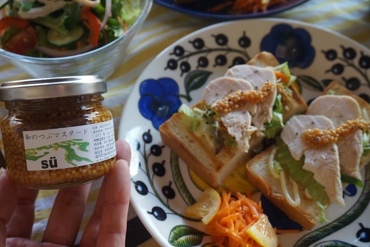 原材料: マスタードシード、果実酢(ぶどう、梨、りんご)、はちみつ、本醸造しょうゆ、塩(原料に小麦、大豆、りんごを含む)