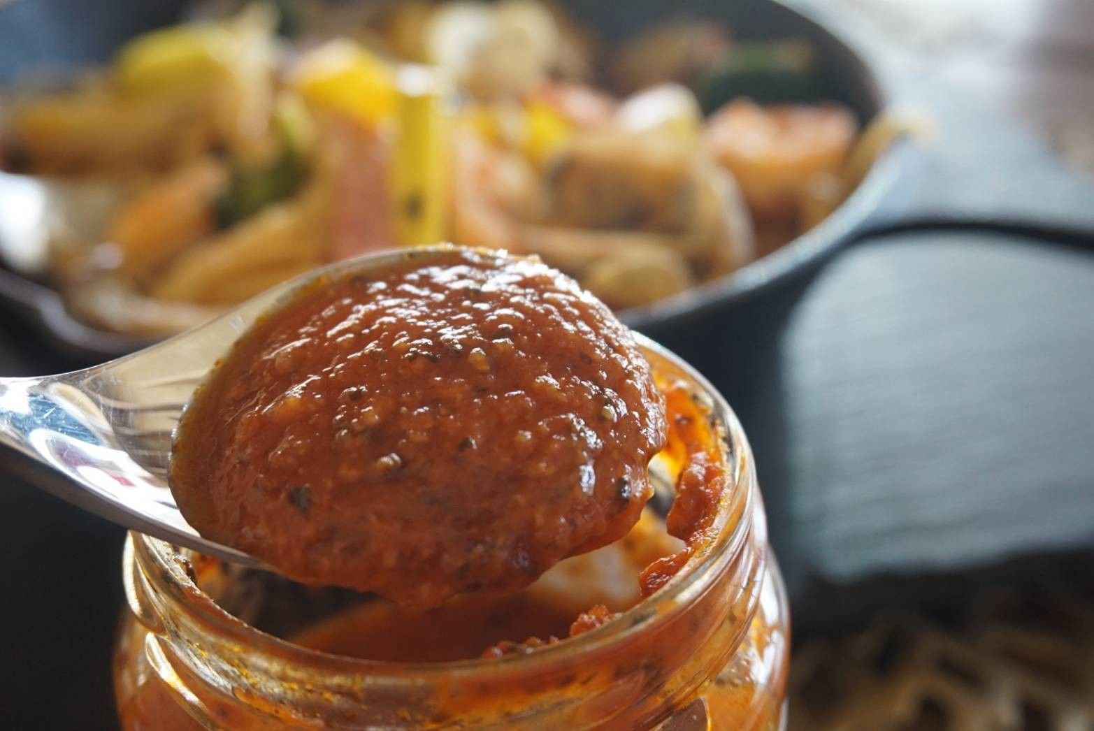 優良トマトがたっぷり入ったパスタソースにカイエンペッパー(唐辛子)を少量入れたちょっと大人の辛口パスタソースです。