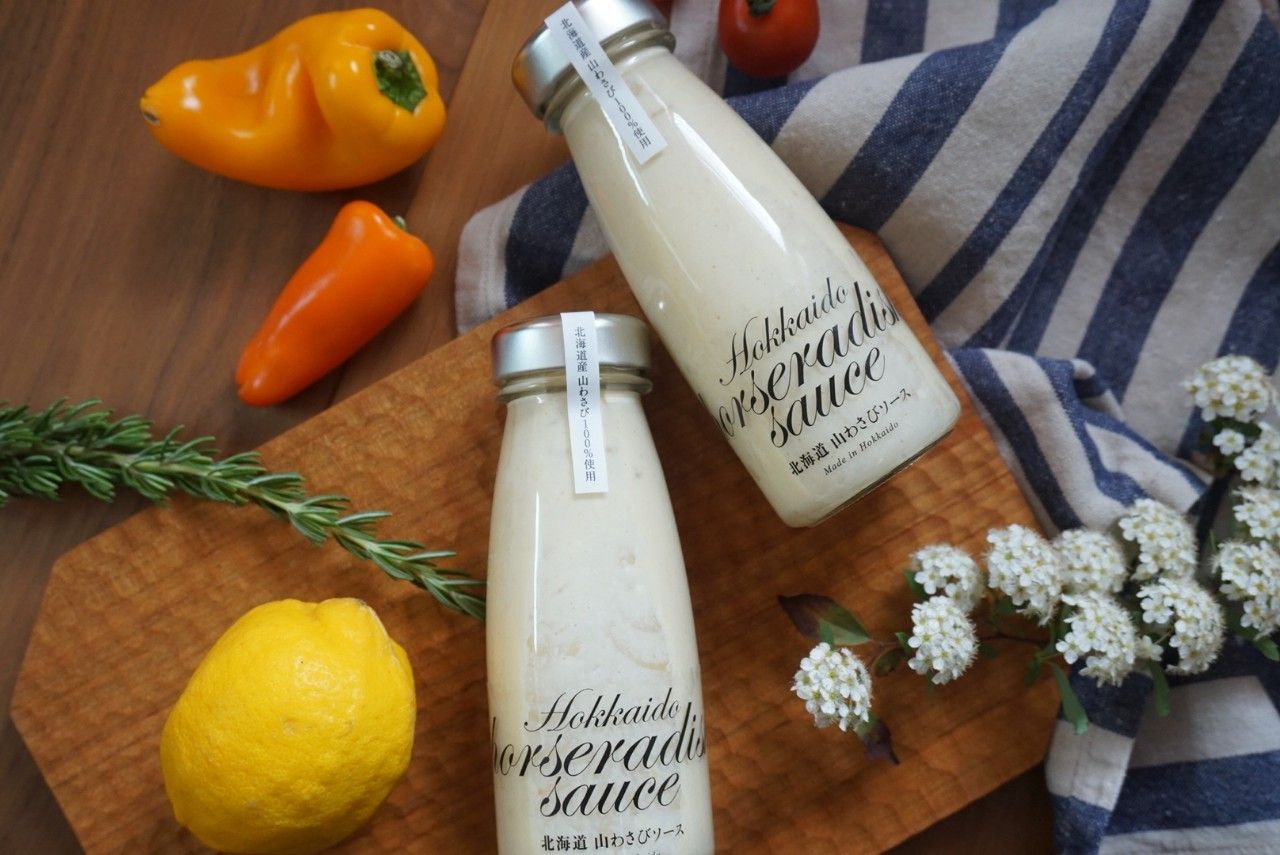 北海道特有の香りの良い山わさびを100%使用したピリッとした辛口のソースです。