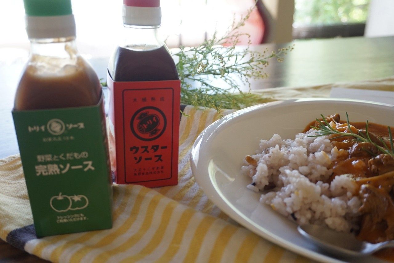 『ウスターソース』をベースに、りんごを加えてフルーティーな甘味に仕立てています。だからあっさり甘いんです。