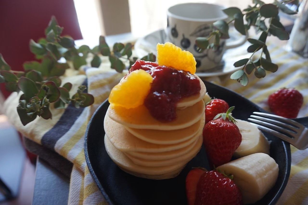 2.北海道産のバターミルクを使用しているので、「ふんわり」「しっとり」したきれいな焼き色のパンケーキができます。