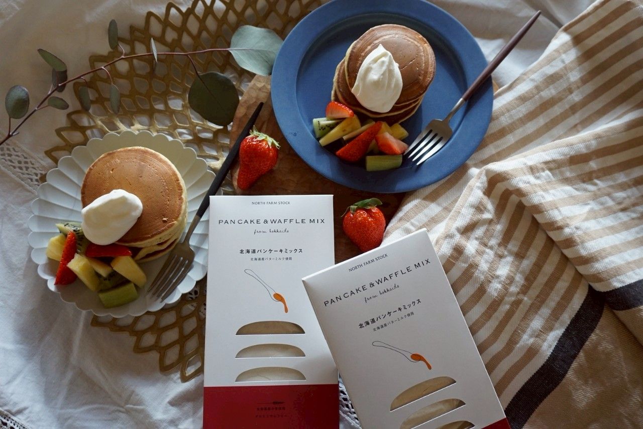 北海道産小麦、バターミルク、砂糖を使用した北海道パンケーキミックスです。